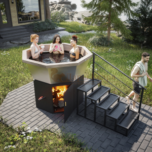 Банный чан из нержавеющей стали Ø-2000 на подставке с ветрозащитой и печью СТ3
