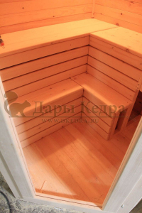 Трехместная угловая финская сауна кабина из кедра с электрокаменкой